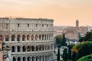 Ancient Roman Colosseum with tourists exploring the historic architecture